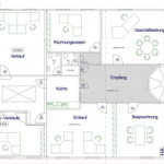 - ca. 56 m² (47,53m² Bürofläche + Anteil an den Nutzräumen)